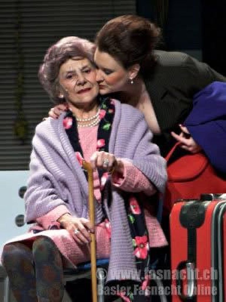 Stephanie spielte die Tochter, die ihre Mutter Heidi Diggelmann im Altersheim versorgte. Das Charivari stand unter dem Titel «E Zwaier us dr Schnabeltasse».