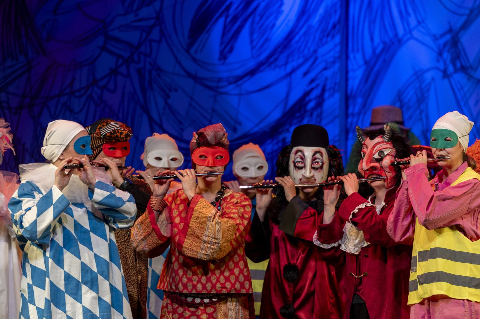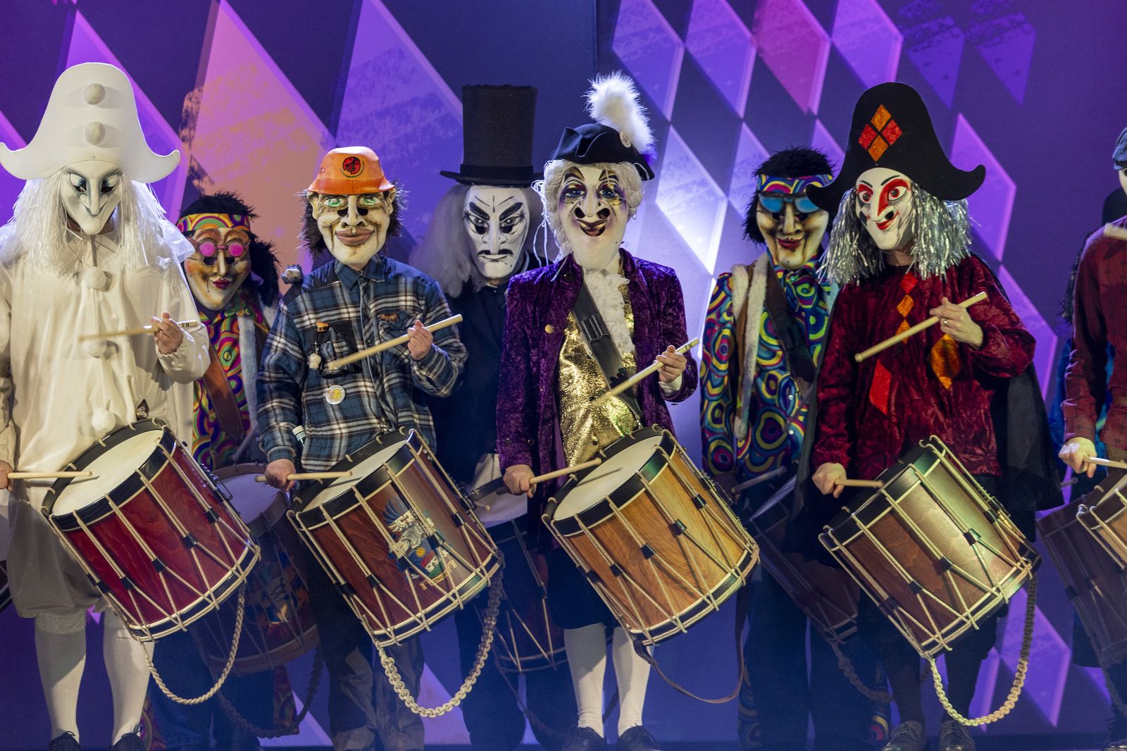 Die Pfeifergruppe Schäärede, vor 20 Jahren eigens für das Charivari ins Leben gerufen, überzeugte einmal mehr durch hochstehende Piccolokunst. Nach einem prächtigen «Verhäxt» im ersten Teil zogen sie das Publikum nach der Pause mit ihrem Jubiläumsmedley «Schääriläum» in ihren Bann – ein wahrer musikalischer Genuss! Eine präzise «Retraite à discrétion» präsentierte die zweite Pfeifergruppe, d Spitzbuebe, begleitet vom Ausnahmetambour Ivan Kym. Für wunderbare klassische Fasnachtsklänge, unter anderem mit dem «Hanswurscht», war die Spale-Clique verantwortlich. Sämtliche Register zog auch der Schnitzelbank Gwäägi und beeindruckte mit überraschenden Verswendungen. Insbesondere ihre Verse zu den BVB und den Polizeiskandalen erhielten von den Zuschauern grossen Beifall. Treffsicher zeigte sich auch der zweite Bank, s Dintelimpli, und punktete unter anderem mit seinen politischen Pointen. Die Guggenmusiken Uelischränzer Basel 1979 und die 75-jährige Schränz-Gritte brachten mit ihrem kraftvollen Sound das Volkshaus zum Zittern. Stimmig abgerundet wurde das fasnächtliche Programm durch die gemeinsamen Tambourensoli der Rotstab-Clique Liestal 1930 und der Fasnachtzunft Ryburg. Zwischen den Programmpunkten sorgten die aussergewöhnlichen Musiker Patrick Stalder an der Klarinette und Marwin Näpflin am Schwyzerörgeli sowie der Basler Spitzentambour Maurice Weiss mit packenden «Jam-Sessions» für lebhafte und energiegeladene Intermezzi – ein musikalischer Höhenflug. Nach jedem Programmteil wurden Punkte vergeben, ganz im Stil des ESC – ein witzig inszeniertes, durchgehendes Element.