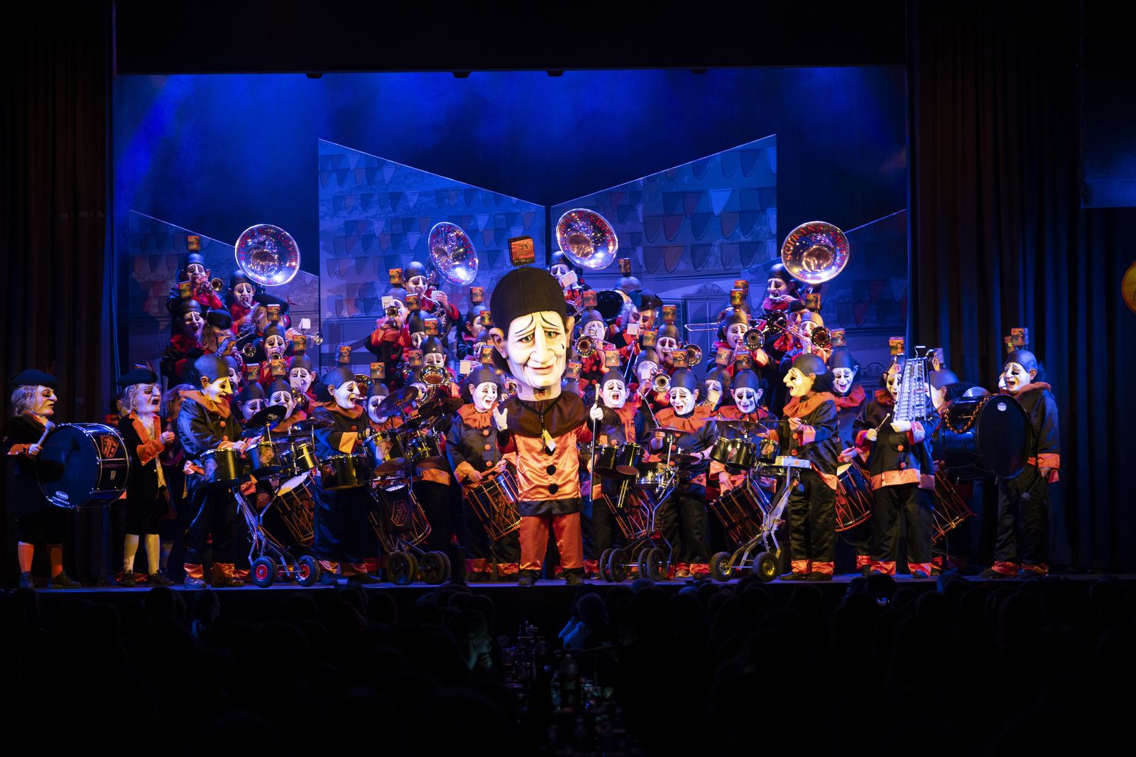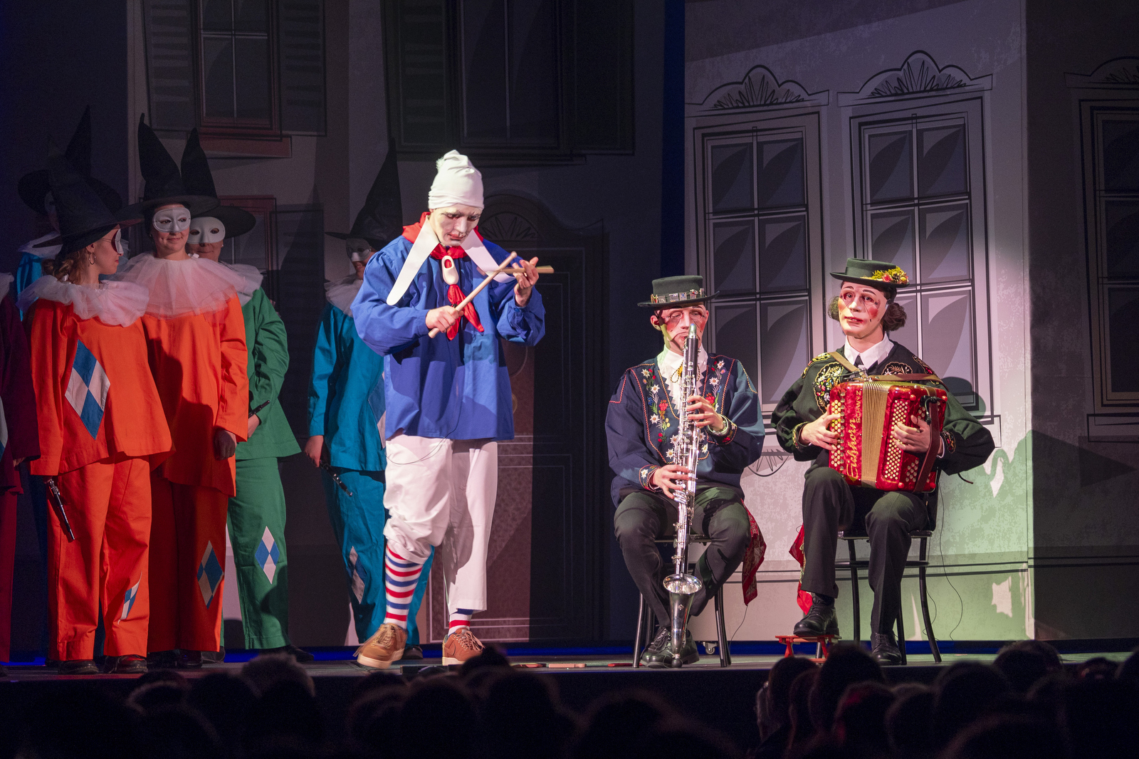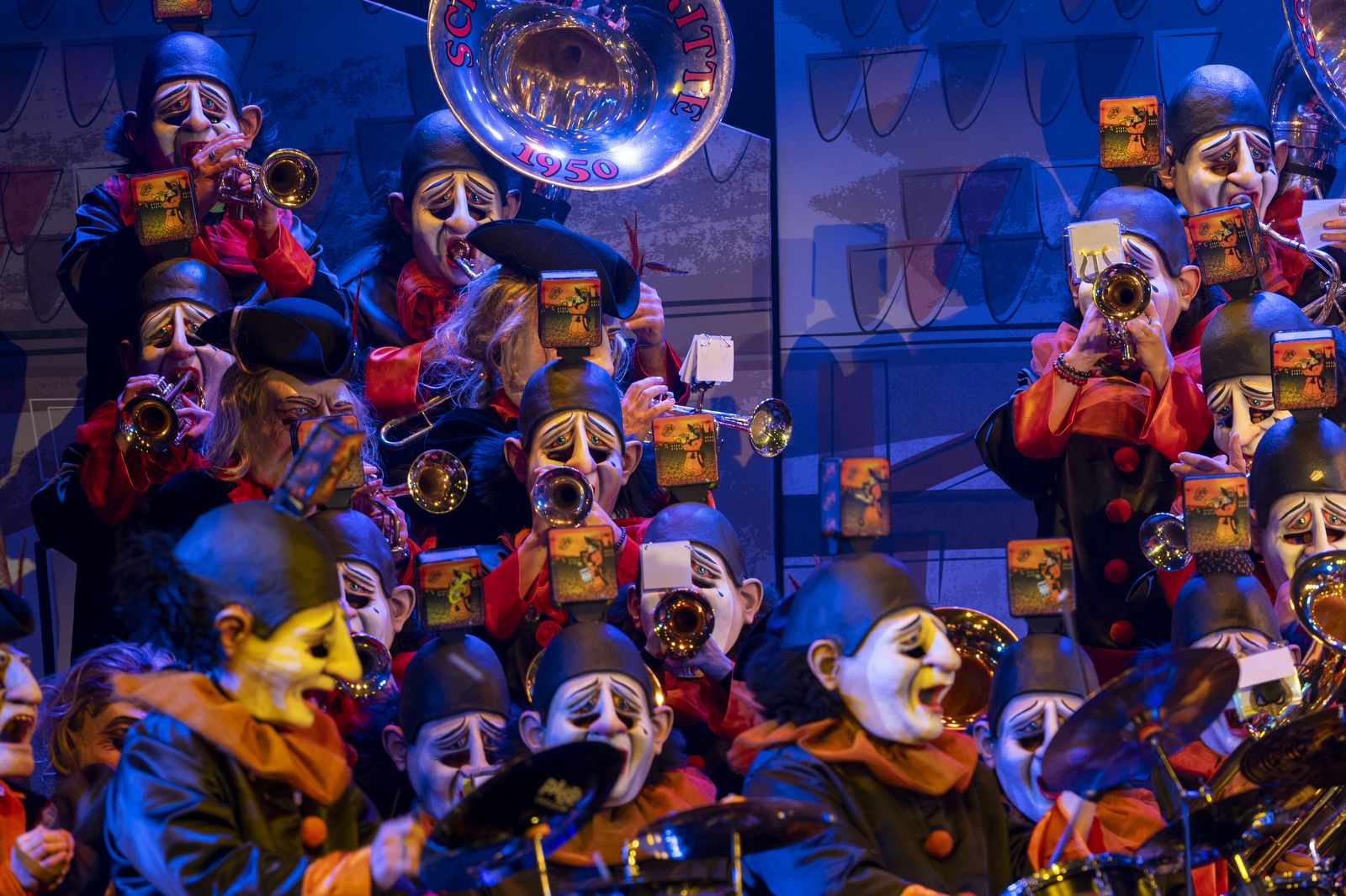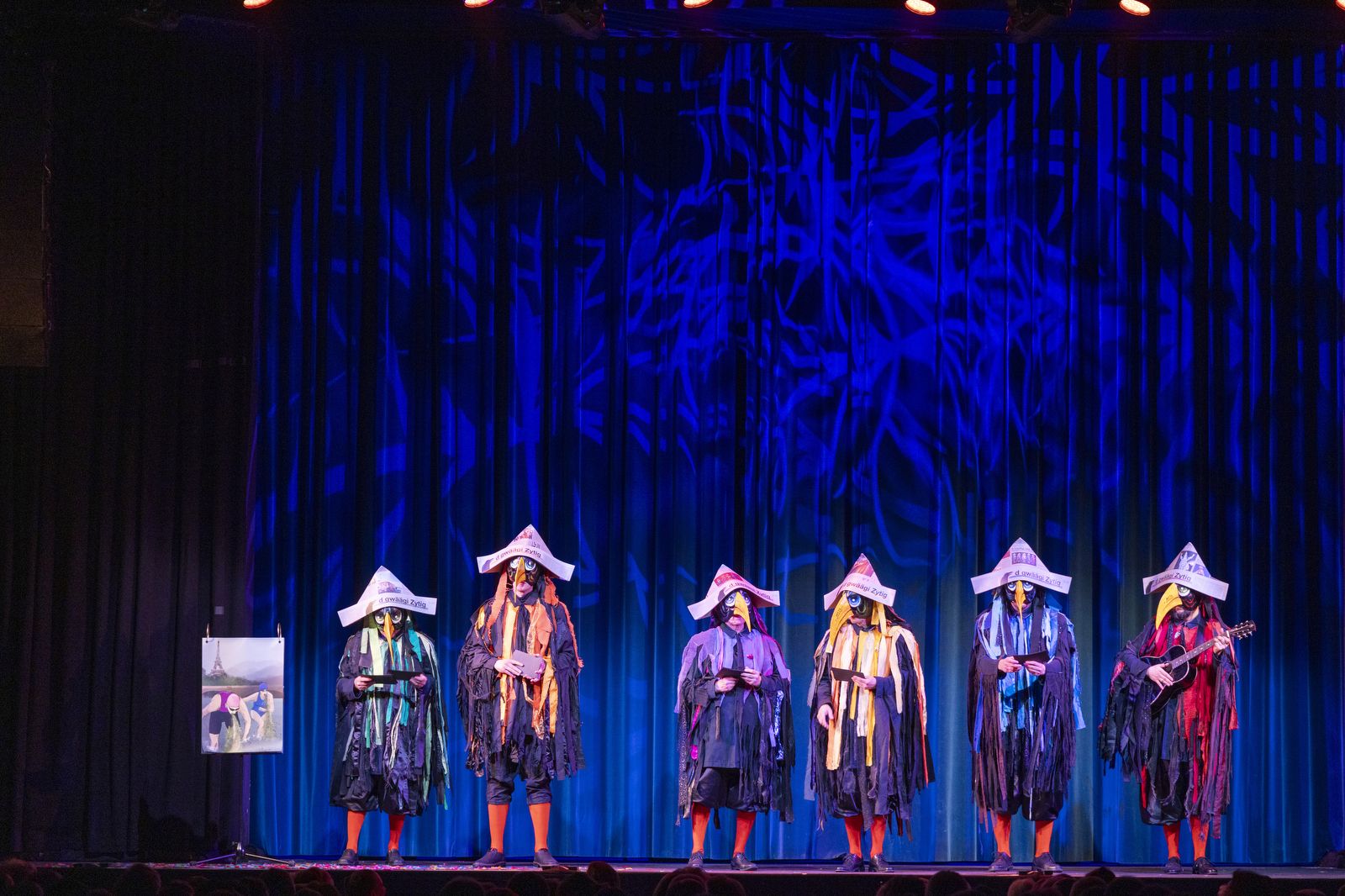 Die Pfeifergruppe Schäärede, vor 20 Jahren eigens für das Charivari ins Leben gerufen, überzeugte einmal mehr durch hochstehende Piccolokunst. Nach einem prächtigen «Verhäxt» im ersten Teil zogen sie das Publikum nach der Pause mit ihrem Jubiläumsmedley «Schääriläum» in ihren Bann – ein wahrer musikalischer Genuss! Eine präzise «Retraite à discrétion» präsentierte die zweite Pfeifergruppe, d Spitzbuebe, begleitet vom Ausnahmetambour Ivan Kym. Für wunderbare klassische Fasnachtsklänge, unter anderem mit dem «Hanswurscht», war die Spale-Clique verantwortlich. Sämtliche Register zog auch der Schnitzelbank Gwäägi und beeindruckte mit überraschenden Verswendungen. Insbesondere ihre Verse zu den BVB und den Polizeiskandalen erhielten von den Zuschauern grossen Beifall. Treffsicher zeigte sich auch der zweite Bank, s Dintelimpli, und punktete unter anderem mit seinen politischen Pointen. Die Guggenmusiken Uelischränzer Basel 1979 und die 75-jährige Schränz-Gritte brachten mit ihrem kraftvollen Sound das Volkshaus zum Zittern. Stimmig abgerundet wurde das fasnächtliche Programm durch die gemeinsamen Tambourensoli der Rotstab-Clique Liestal 1930 und der Fasnachtzunft Ryburg. Zwischen den Programmpunkten sorgten die aussergewöhnlichen Musiker Patrick Stalder an der Klarinette und Marwin Näpflin am Schwyzerörgeli sowie der Basler Spitzentambour Maurice Weiss mit packenden «Jam-Sessions» für lebhafte und energiegeladene Intermezzi – ein musikalischer Höhenflug. Nach jedem Programmteil wurden Punkte vergeben, ganz im Stil des ESC – ein witzig inszeniertes, durchgehendes Element.