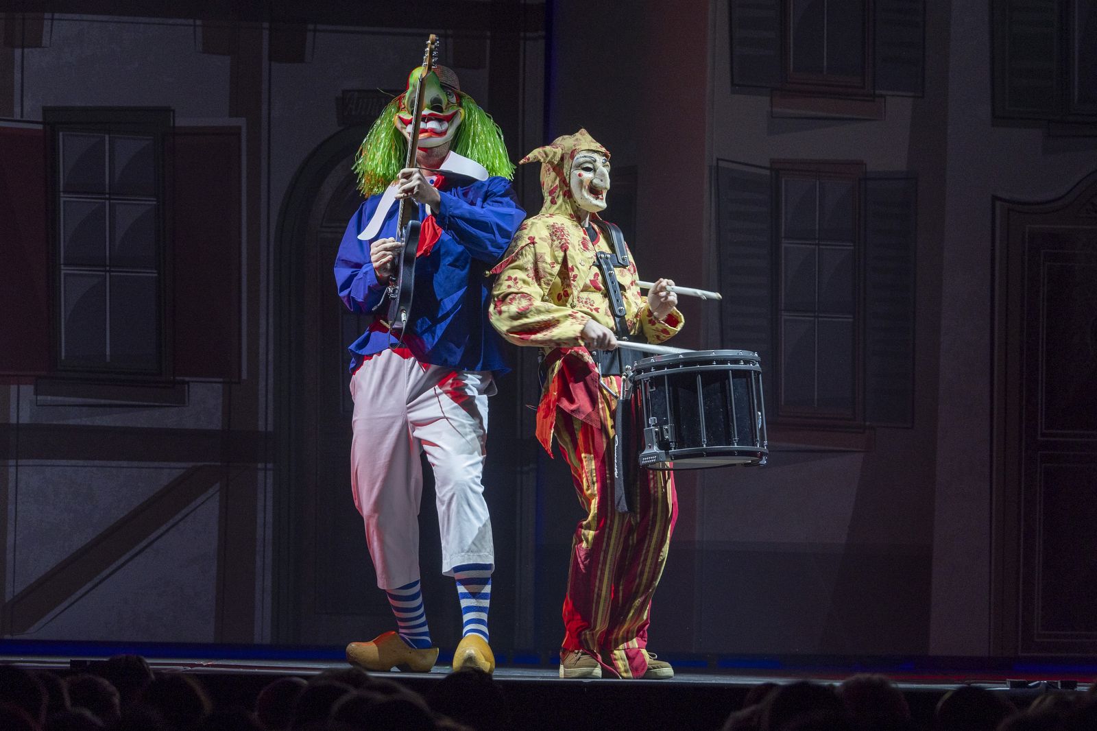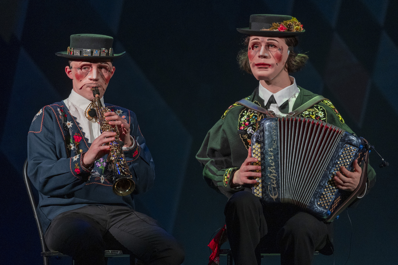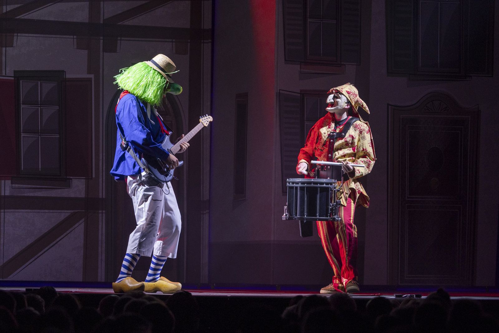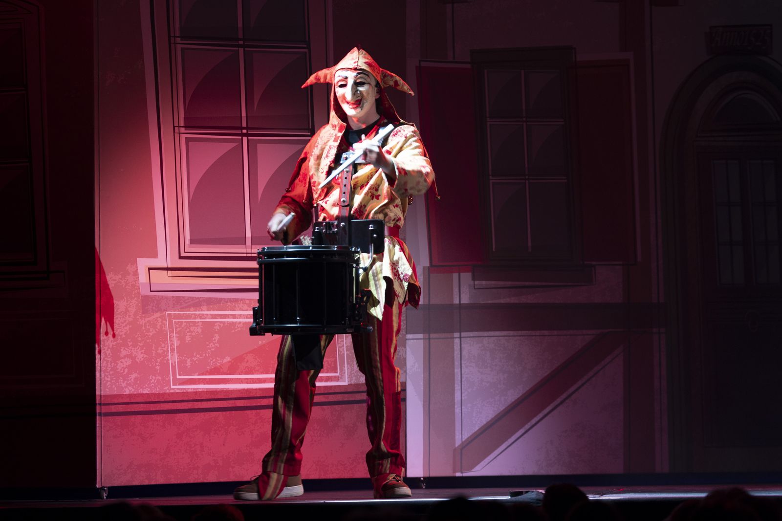Die Pfeifergruppe Schäärede, vor 20 Jahren eigens für das Charivari ins Leben gerufen, überzeugte einmal mehr durch hochstehende Piccolokunst. Nach einem prächtigen «Verhäxt» im ersten Teil zogen sie das Publikum nach der Pause mit ihrem Jubiläumsmedley «Schääriläum» in ihren Bann – ein wahrer musikalischer Genuss! Eine präzise «Retraite à discrétion» präsentierte die zweite Pfeifergruppe, d Spitzbuebe, begleitet vom Ausnahmetambour Ivan Kym. Für wunderbare klassische Fasnachtsklänge, unter anderem mit dem «Hanswurscht», war die Spale-Clique verantwortlich. Sämtliche Register zog auch der Schnitzelbank Gwäägi und beeindruckte mit überraschenden Verswendungen. Insbesondere ihre Verse zu den BVB und den Polizeiskandalen erhielten von den Zuschauern grossen Beifall. Treffsicher zeigte sich auch der zweite Bank, s Dintelimpli, und punktete unter anderem mit seinen politischen Pointen. Die Guggenmusiken Uelischränzer Basel 1979 und die 75-jährige Schränz-Gritte brachten mit ihrem kraftvollen Sound das Volkshaus zum Zittern. Stimmig abgerundet wurde das fasnächtliche Programm durch die gemeinsamen Tambourensoli der Rotstab-Clique Liestal 1930 und der Fasnachtzunft Ryburg. Zwischen den Programmpunkten sorgten die aussergewöhnlichen Musiker Patrick Stalder an der Klarinette und Marwin Näpflin am Schwyzerörgeli sowie der Basler Spitzentambour Maurice Weiss mit packenden «Jam-Sessions» für lebhafte und energiegeladene Intermezzi – ein musikalischer Höhenflug. Nach jedem Programmteil wurden Punkte vergeben, ganz im Stil des ESC – ein witzig inszeniertes, durchgehendes Element.
