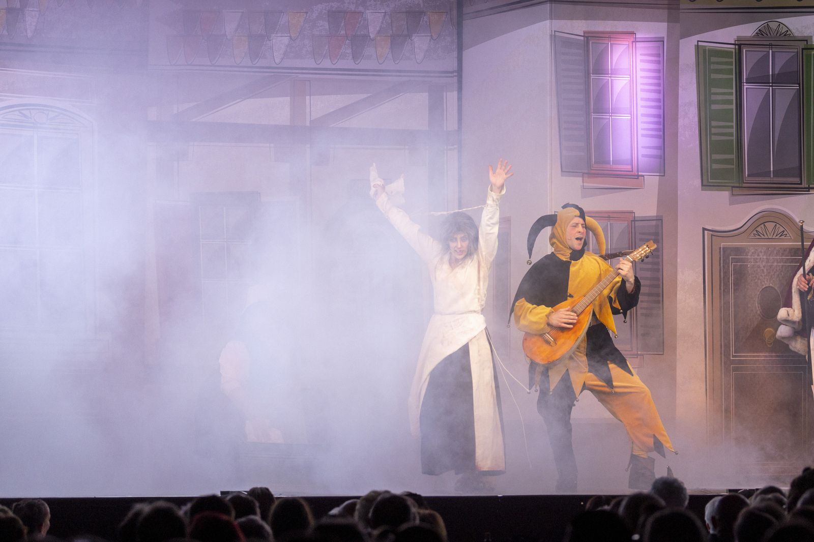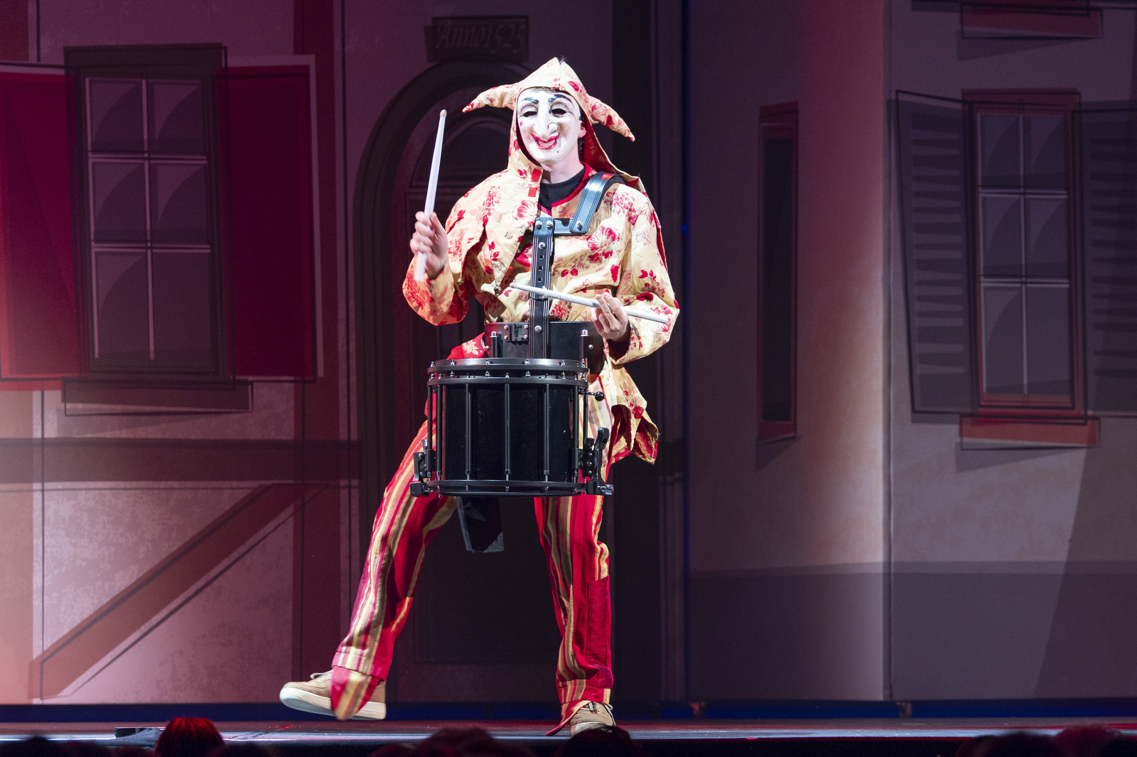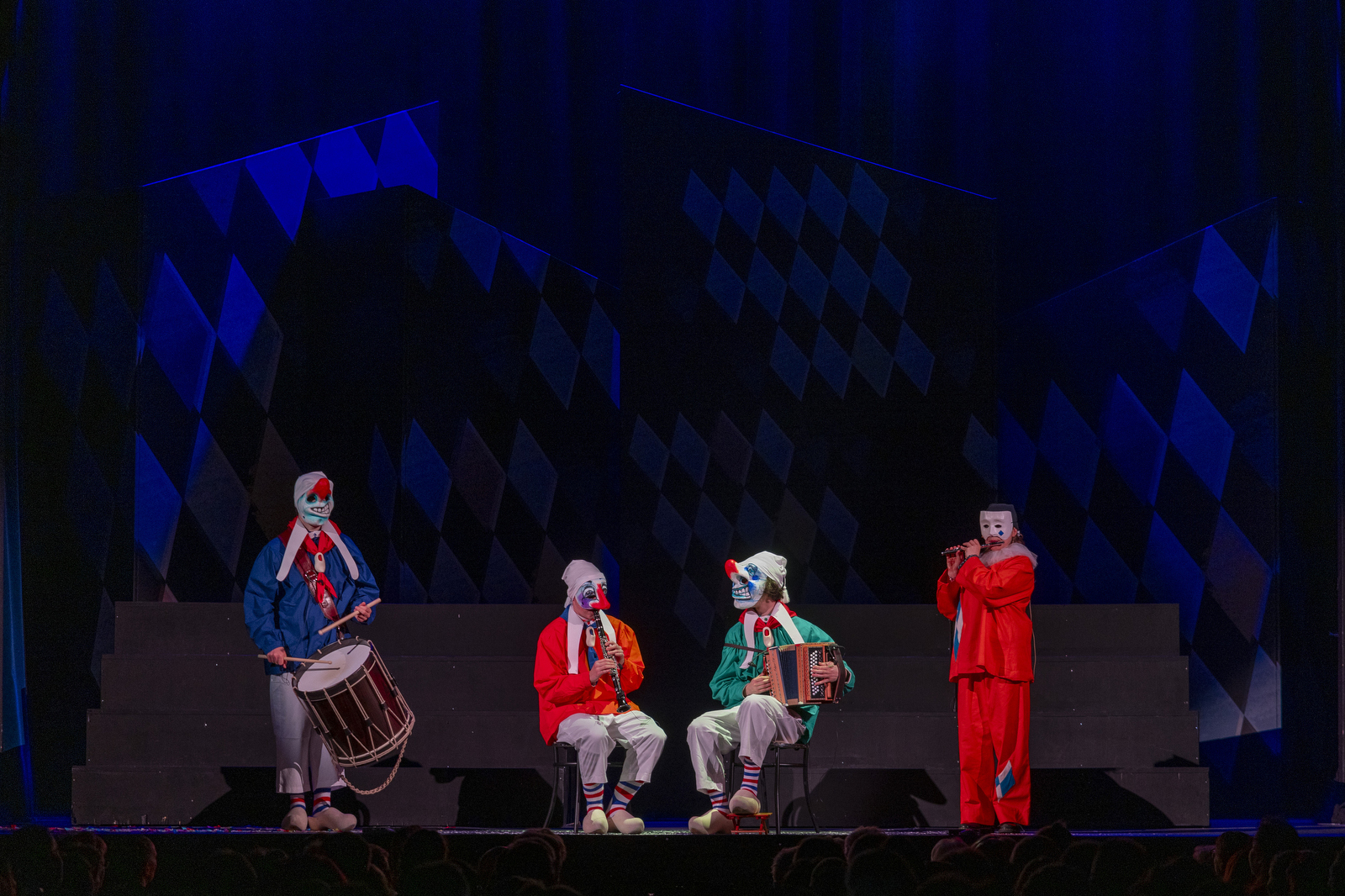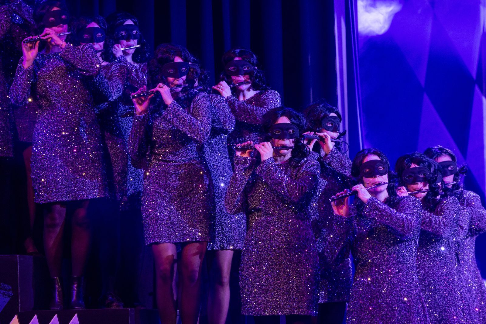 Die Pfeifergruppe Schäärede, vor 20 Jahren eigens für das Charivari ins Leben gerufen, überzeugte einmal mehr durch hochstehende Piccolokunst. Nach einem prächtigen «Verhäxt» im ersten Teil zogen sie das Publikum nach der Pause mit ihrem Jubiläumsmedley «Schääriläum» in ihren Bann – ein wahrer musikalischer Genuss! Eine präzise «Retraite à discrétion» präsentierte die zweite Pfeifergruppe, d Spitzbuebe, begleitet vom Ausnahmetambour Ivan Kym. Für wunderbare klassische Fasnachtsklänge, unter anderem mit dem «Hanswurscht», war die Spale-Clique verantwortlich. Sämtliche Register zog auch der Schnitzelbank Gwäägi und beeindruckte mit überraschenden Verswendungen. Insbesondere ihre Verse zu den BVB und den Polizeiskandalen erhielten von den Zuschauern grossen Beifall. Treffsicher zeigte sich auch der zweite Bank, s Dintelimpli, und punktete unter anderem mit seinen politischen Pointen. Die Guggenmusiken Uelischränzer Basel 1979 und die 75-jährige Schränz-Gritte brachten mit ihrem kraftvollen Sound das Volkshaus zum Zittern. Stimmig abgerundet wurde das fasnächtliche Programm durch die gemeinsamen Tambourensoli der Rotstab-Clique Liestal 1930 und der Fasnachtzunft Ryburg. Zwischen den Programmpunkten sorgten die aussergewöhnlichen Musiker Patrick Stalder an der Klarinette und Marwin Näpflin am Schwyzerörgeli sowie der Basler Spitzentambour Maurice Weiss mit packenden «Jam-Sessions» für lebhafte und energiegeladene Intermezzi – ein musikalischer Höhenflug. Nach jedem Programmteil wurden Punkte vergeben, ganz im Stil des ESC – ein witzig inszeniertes, durchgehendes Element.